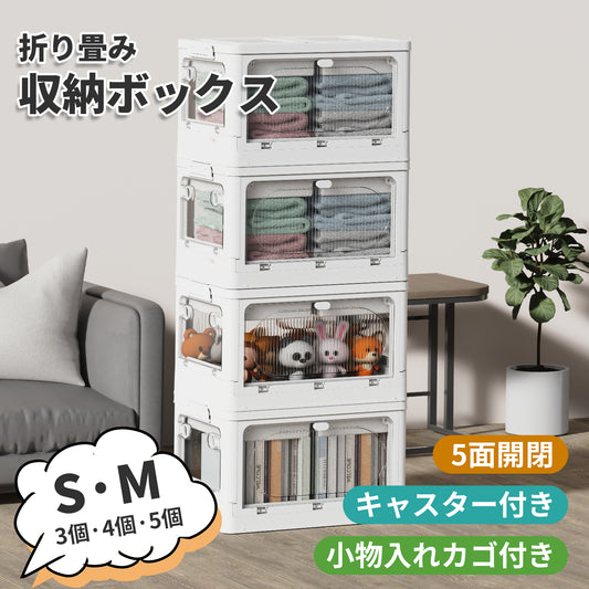 COOSOT 収納ボックス 折り畳み 蓋付き 小物 収納 コンテナ ボックス 折りたたみ キャスター付き 積み重ね 扉付き 5面開き 組立簡単 おしゃれ 多機能 省スペース